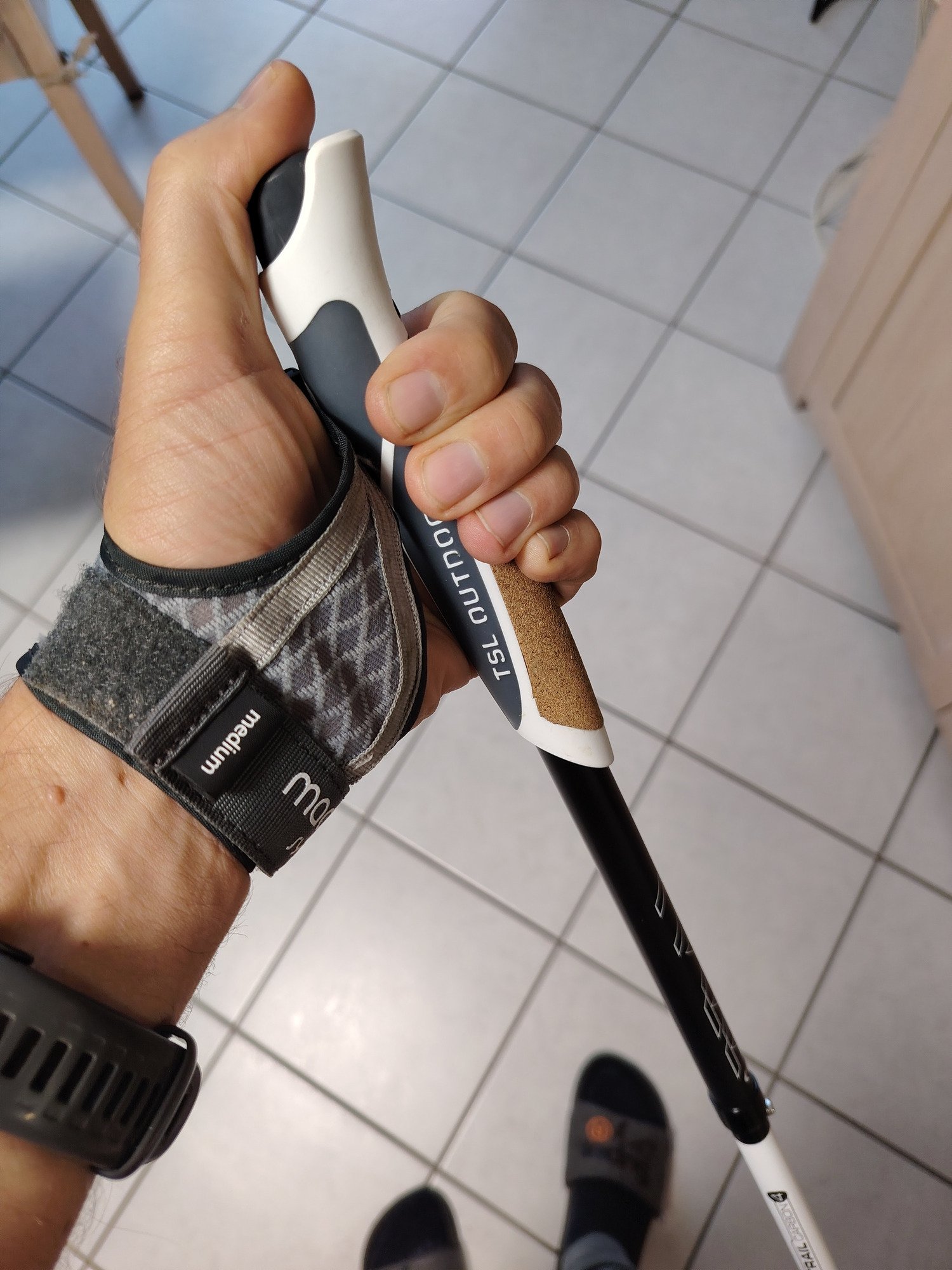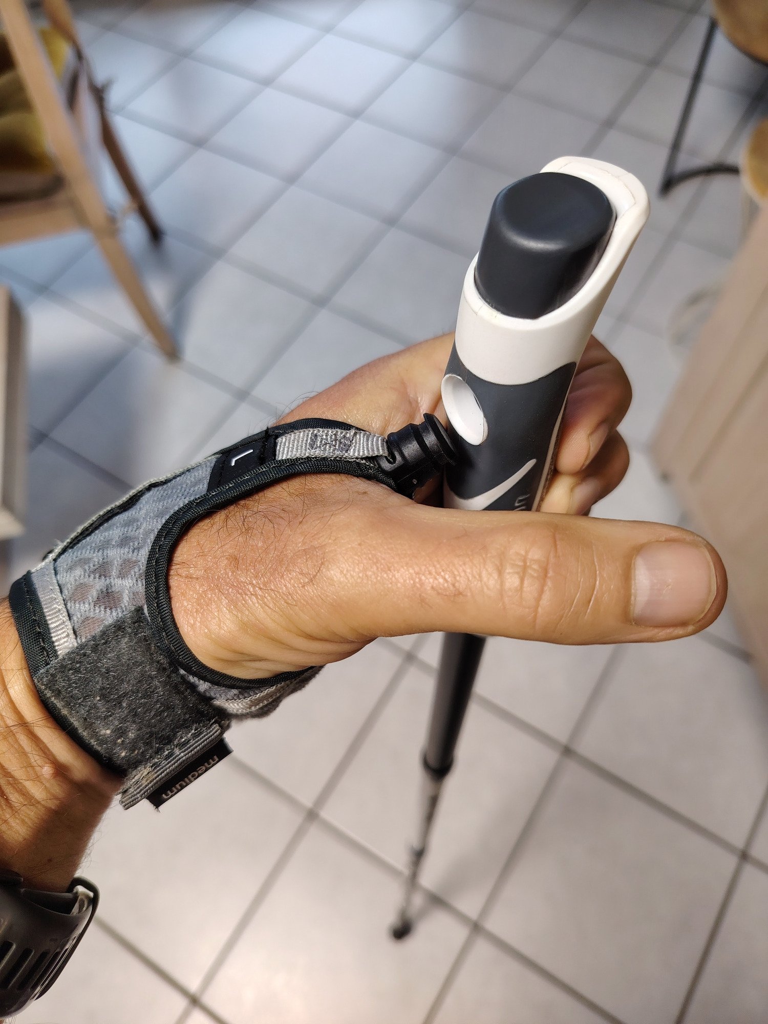 Très rapidement habitué aux gantelets, j'apprécie particulièrement le maintien et la transmission de force très naturelle sur le bâton. Le clippage est facile et on se détache par appui avec le pouce sur le bouton. Je n'ai jamais eu de déclipage intempestif.