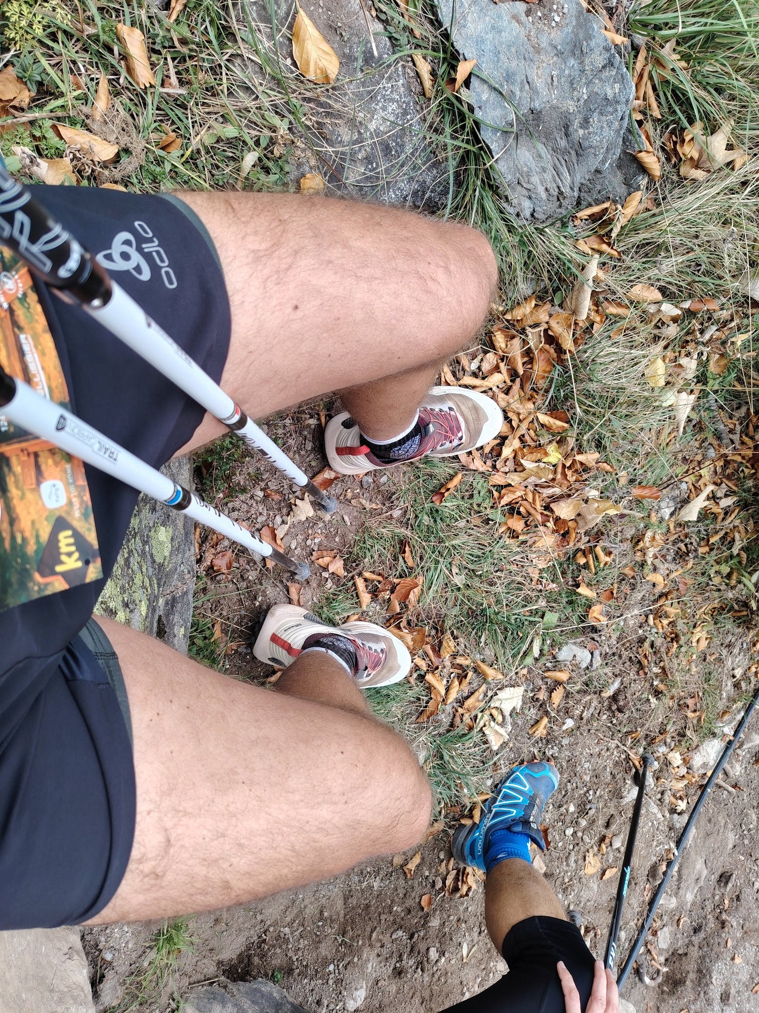 J'utilise les bâtons aussi en descentes techniques, une technique peu commune qui me convient et qui m'a déjà sauvé quelques chevilles. Pour cela, comme en ski, avec les bâtons détachés. Une petite gêne avec la boule plastique qui a tendance à se reclipper toute seule attirée par l'aimant. Les bâtons ont un peu d'inertie comparé à mes Black diamond 50gr plus léger.