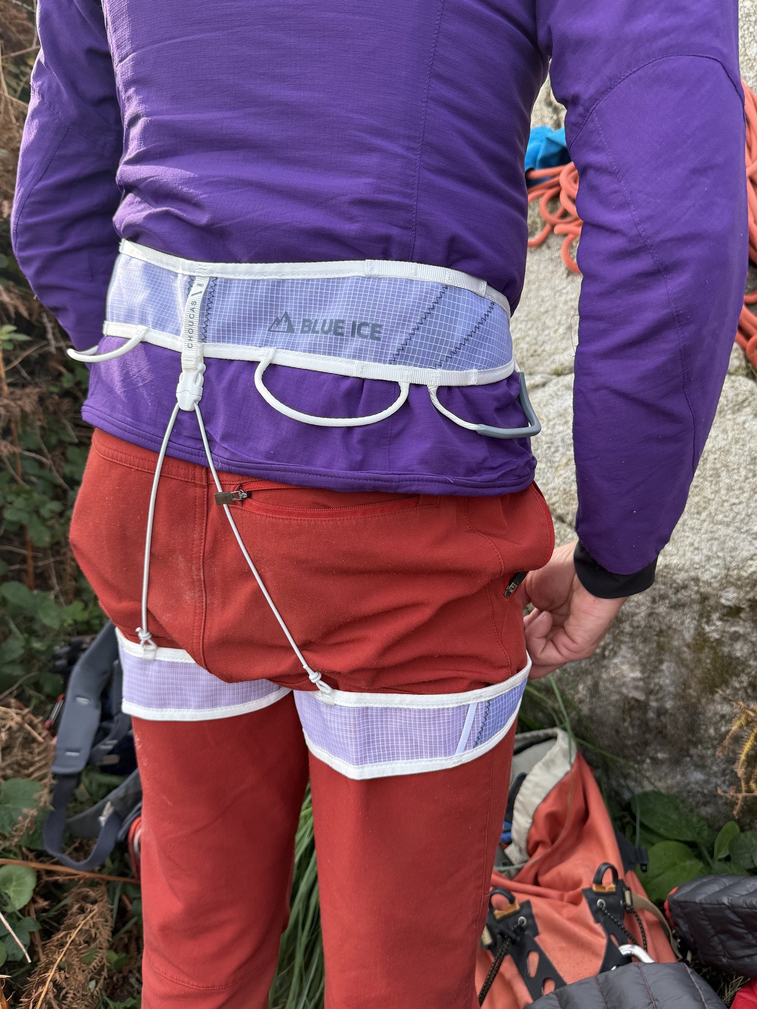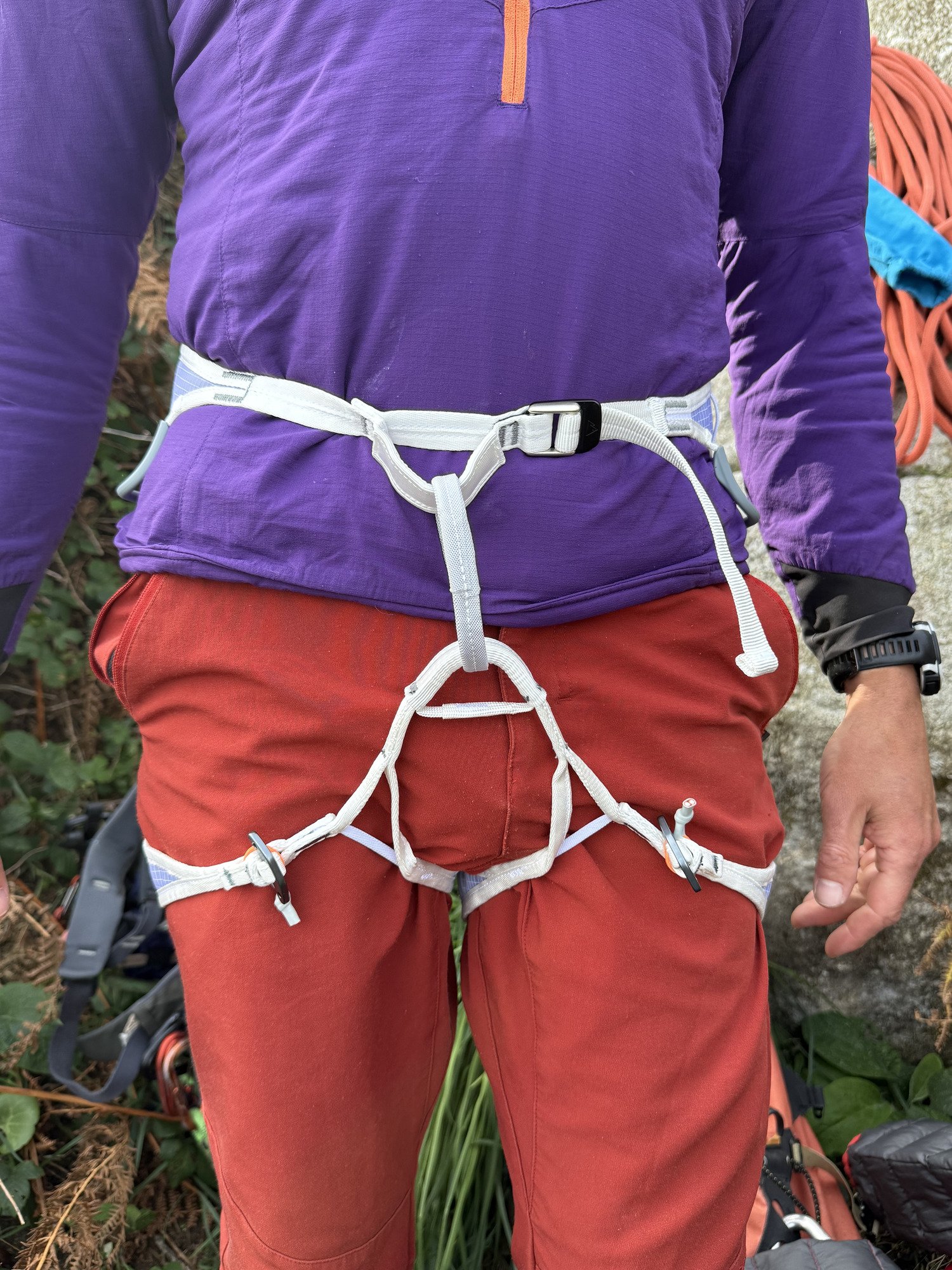 Évidemment, on retrouve aussi les limites déjà mentionnées par d’autres utilisateurs : avec un équipement très chargé, ou si l’on doit transporter un grand nombre de coinceurs, on atteint vite les limites de capacité. De même, lors de rappels un peu longs ou dans les rares moments où j’ai dû rester pendu plus longtemps que prévu, le confort reste correct, mais clairement pas optimal. Ce n’est tout simplement pas ce pour quoi il a été pensé.