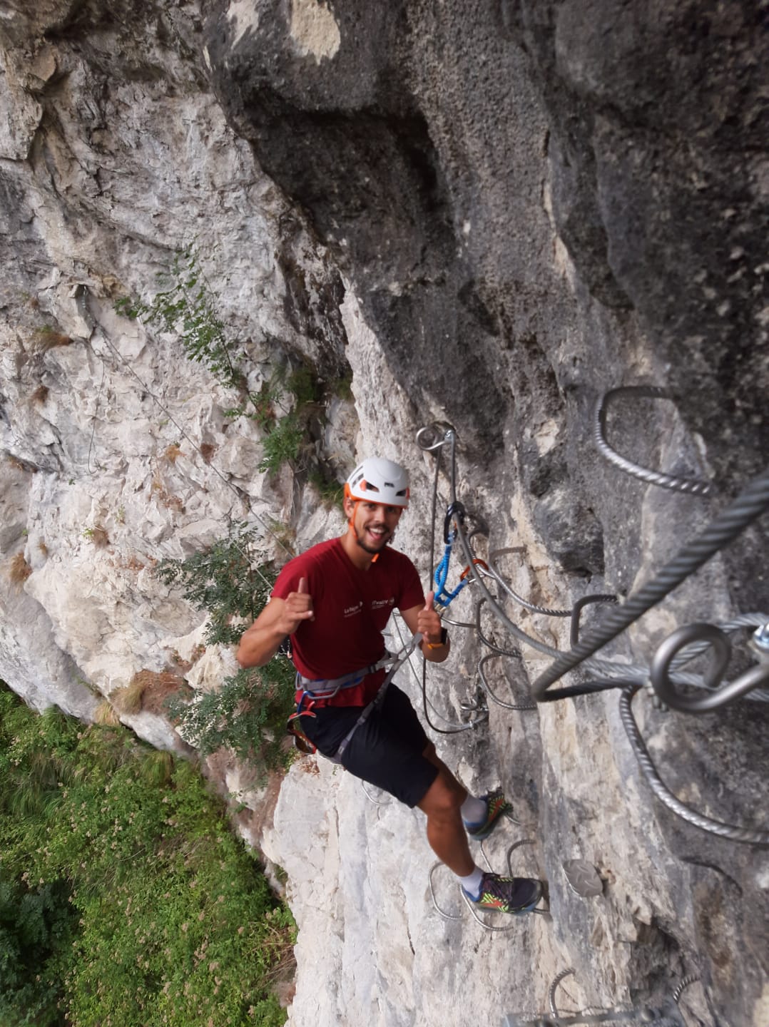 D'abord en escalade, on est vraiment bien dedans ! Porté toute la journée en grande voie on fini par ne plus penser qu'on la sur la tête. Petit bémol à mon sens, je trouve que le bord supérieur du casque dépasse un peu et lorsqu'il faut lever les yeux je me sens gêné et obligé de pencher toute la tête pour bien voir ou je dois aller (peut-être que je grimpe trop souvent en salle l'hiver et je n'ai plus l'habitude). Pour l'assurage sentiment similaire mais avec des lunettes à prisme pas de souci du tout pour le coup.