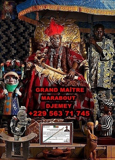 Bienvenue chez le grand maître marabout puissant du monde entier. Meilleur marabout medium africain en Europe et dans le monde entier, spécialisé dans la voyance, le maraboutage, l'ésotérisme, la magie vaudou et autre, bien connue pour mon expertise, ma franchise et mes résultats dans les pratiques occultes. Le marabout Africain sorcier vaudou Djemey est la dernière solution pour tous vos problèmes. Vous vous sentez trompé dans votre couple, il vous aide à reconquérir votre amour, retour d’affection sérieux, choisissez maintenant un marabout compétent pour avoir la richesse rapide, vrai marabout voyant, travail efficace satisfaction ou remboursement, paiement après résultat. Retour d'affection, retour affectif sérieux, vrai maître marabout voyant puissant sérieux reconnu.