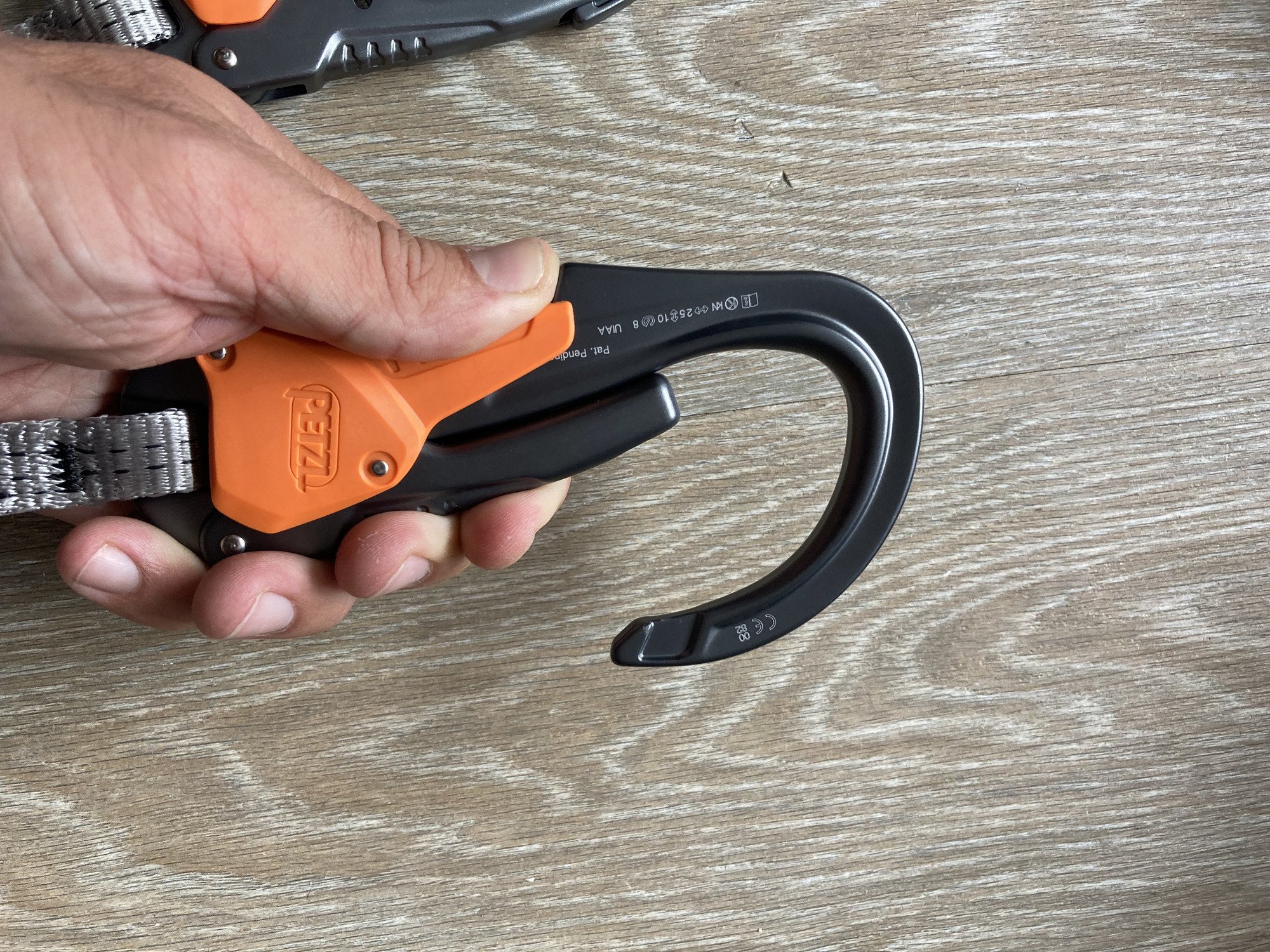 Pour bien commencé mon test j’ai d’abord commencé par examiner les longes sous toutes les coutures dans mon canap’ et la première chose qui a attiré mon attention était le bruit à l’ouverture et la fermeture du doigt. Un bruit de ressort important qui donne le sentiment que tout mériterait de l’huile, mais bien entendu qu’il ne faut pas le faire. Je me suis aussi dit que ce bruit pourrait devenir prise de tête lors de la pratique, et bien heureusement ce n’est pas le cas ; une fois sur la falaise on pense à bien d’autres choses que ce bruit qui n’est que secondaire. `
