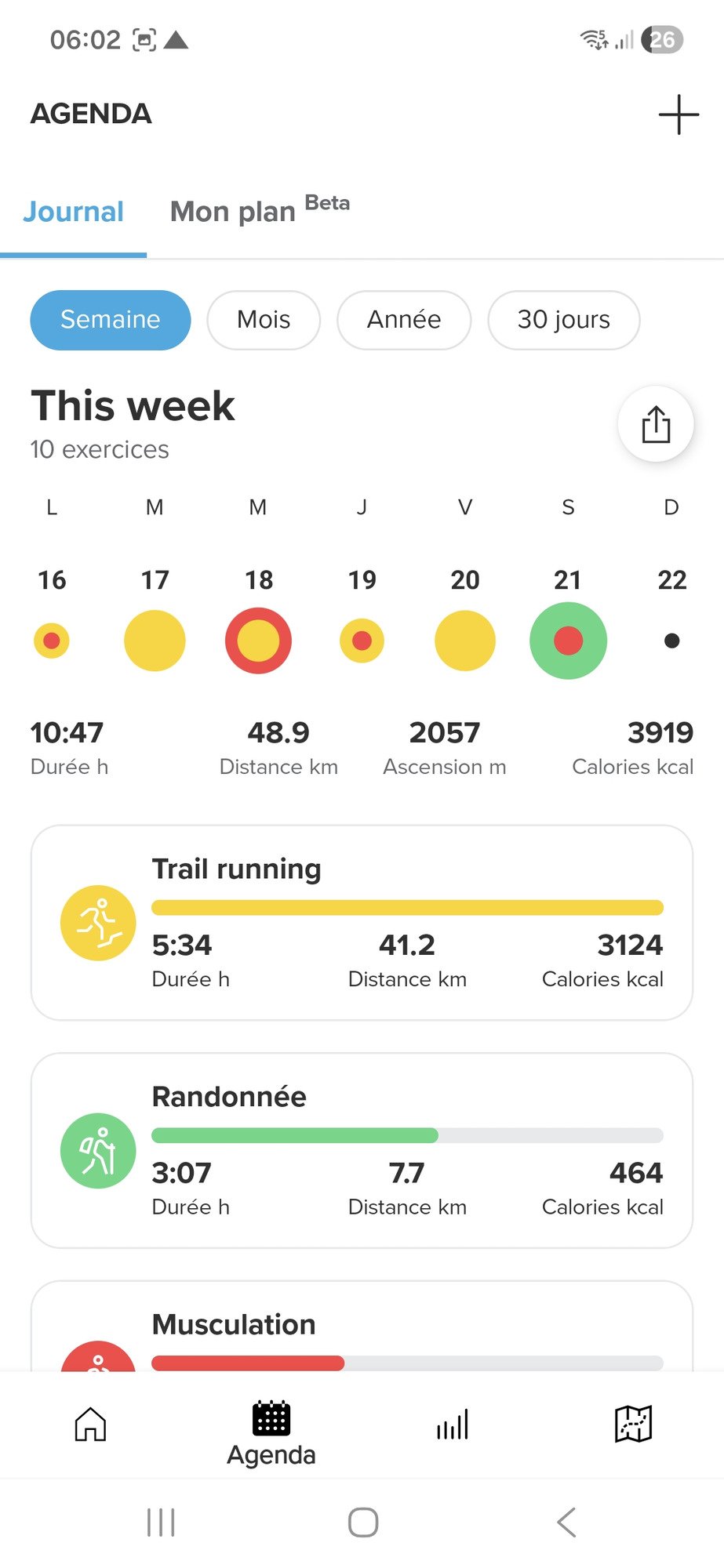 Suunto a énormément progressé sur son application. Créer un itinéraire, consulter ses données (hebdomadaires, mensuelles, annuelles, dénivelé, allure, fréquence cardiaque) est devenu simple. La connexion Bluetooth est instantanée : testée avec Xiaomi, Samsung et Oppo, sans aucun souci.