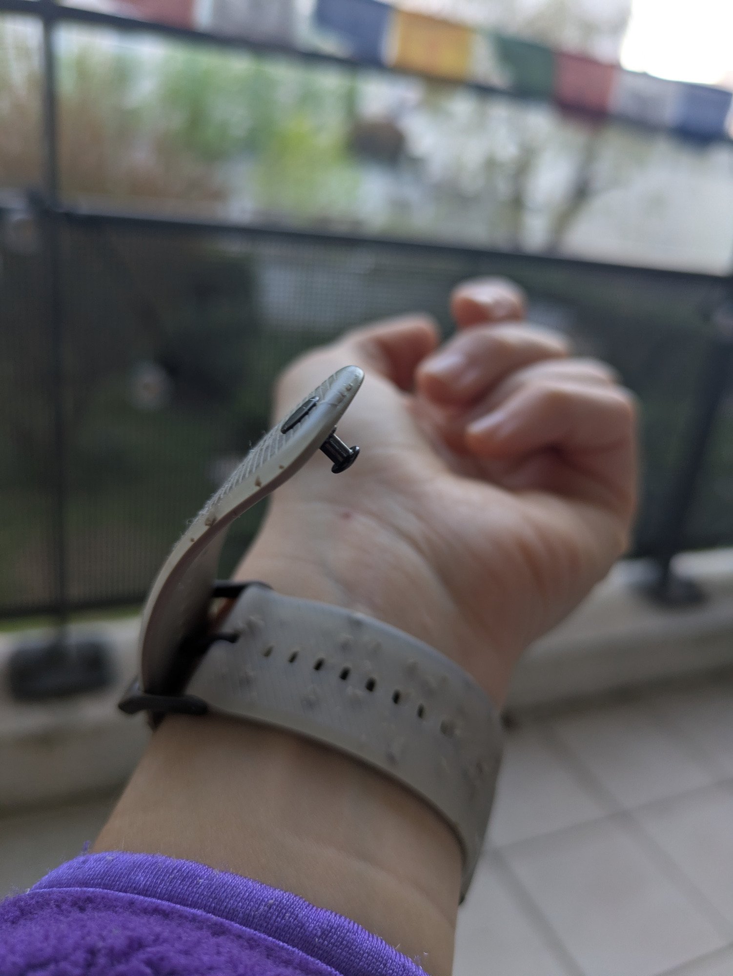 - dimensions : 45/11,5mm : elle est pas trop imposante malgré mon petit poignet. La taille de l'écran est juste bien, pour avoir une bonne visibilité des cartes et autres indicateurs, sans que ça soit trop gros.