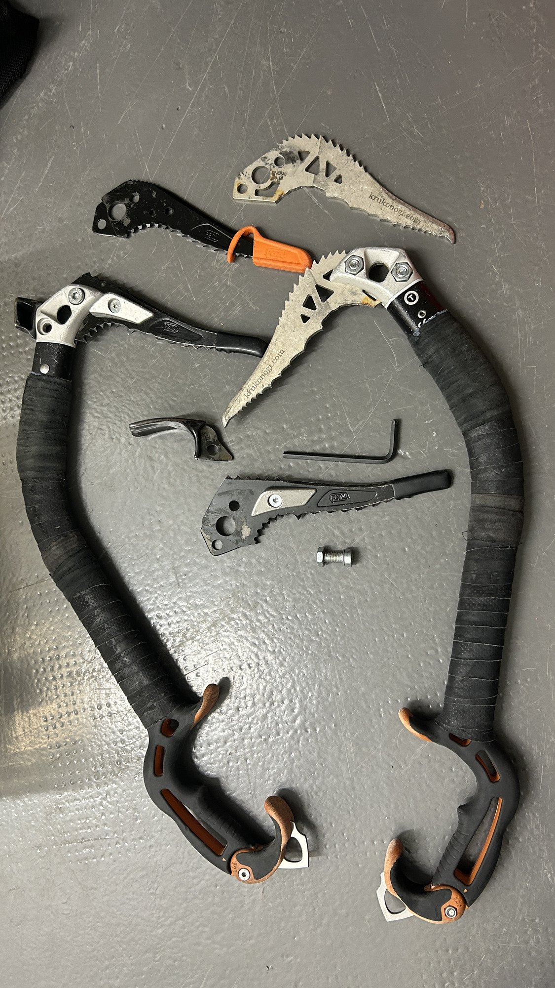 J’ai dû monter/démonter mes piolets une vingtaine de fois (Petzl fournit les clés) :