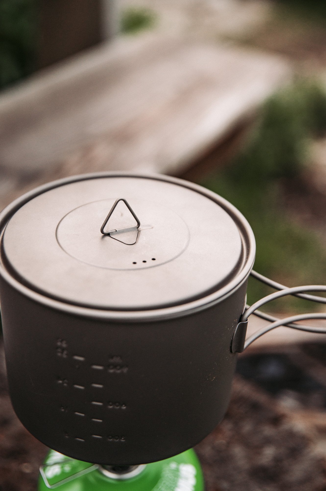 Après un an d’utilisation en bivouac et en camping, été comme hiver, ce pot en titane m’a clairement convaincu. Utilisé avec un réchaud Décathlon ou un BRS 3000T, il chauffe rapidement (même si je n’ai jamais chronométré) et refroidit tout aussi vite. Il est ultraléger, très solide, facile à nettoyer, et la contenance de 1300 ml est parfaite pour deux personnes — assez pour de l’eau, un plat lyophilisé, ou même des préparations maison.