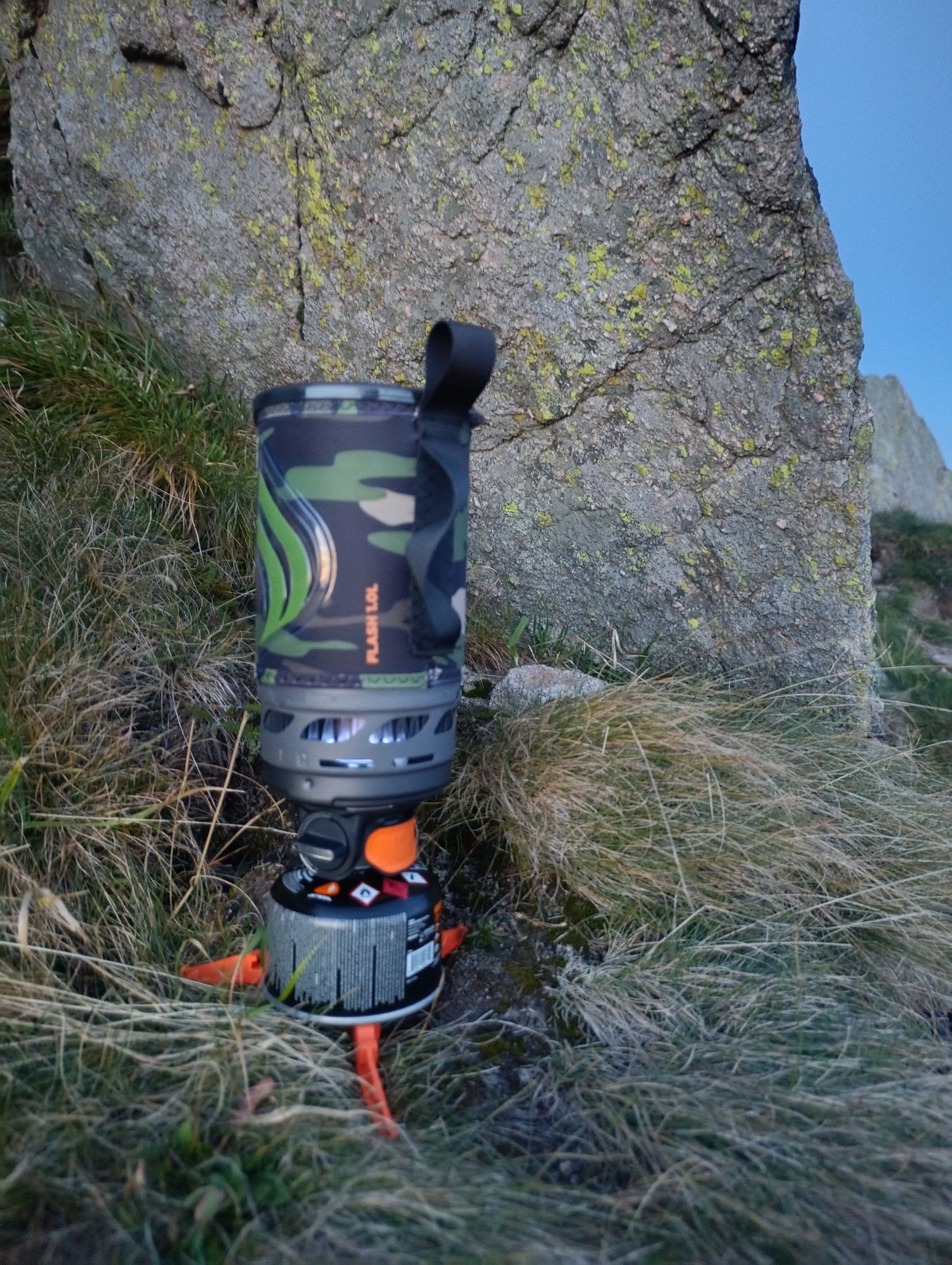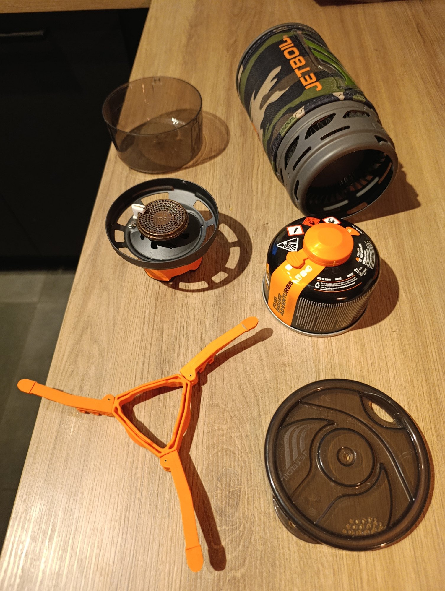 Il faut avouer que le jetboil est incroyable niveau efficacité. Il est très simple à monter. Le trépied est un gros plus par rapport à ce que j’utilisais avant car j’avais toujours peur que la gamelle tombe avec le vent ou juste par instabilité, mais avec le trépied je suis plutôt serein.