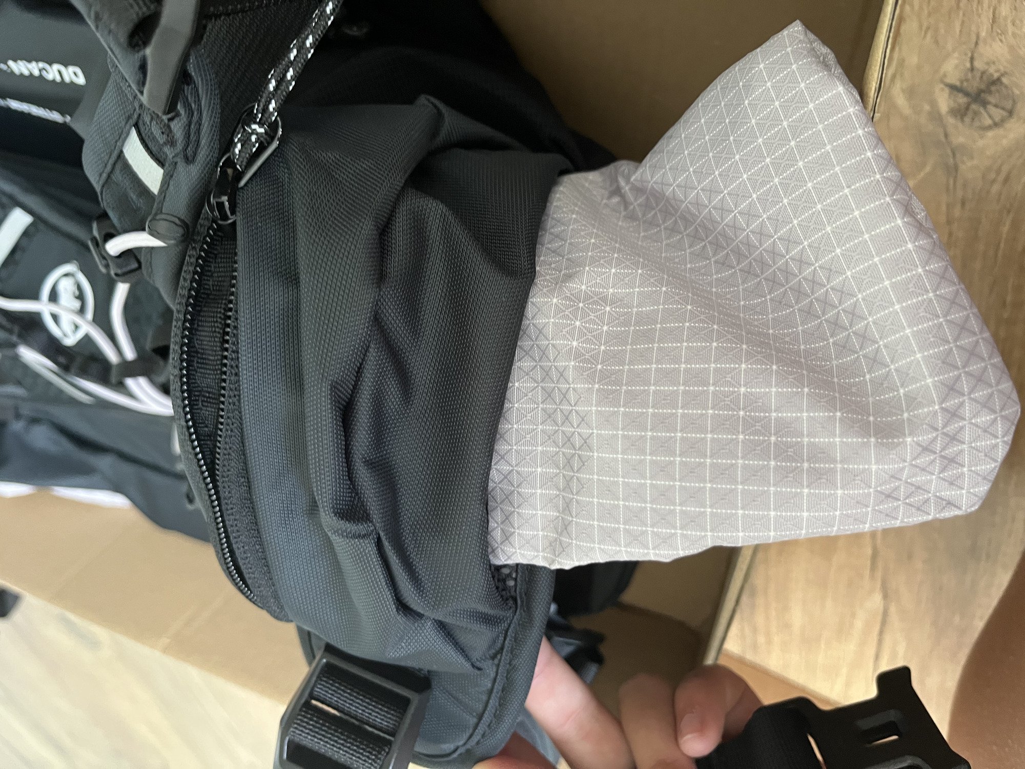 Le sac fait 32 litres pour environ 1 kg si je me trompe pas, ce qui est franchement léger pour ce type de sac. Et surtout, le volume est bien exploité. Pour un bivouac léger, ça passe sans problème si on n’emmènes pas sa maison entière. Pour la via ferrata, j’ai pu transporter casque, baudrier et longes sans problème.