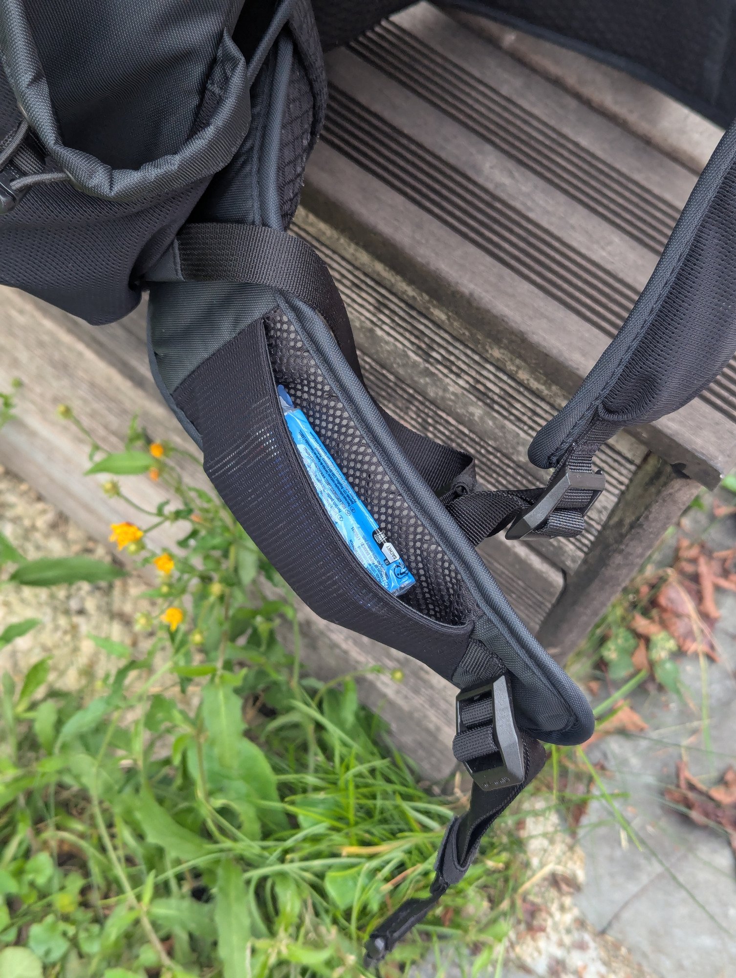 - 1 poche en filet sur chaque bretelle pour un petit en-cas ou une paire de lunette à portée de main sans s'arrêter.