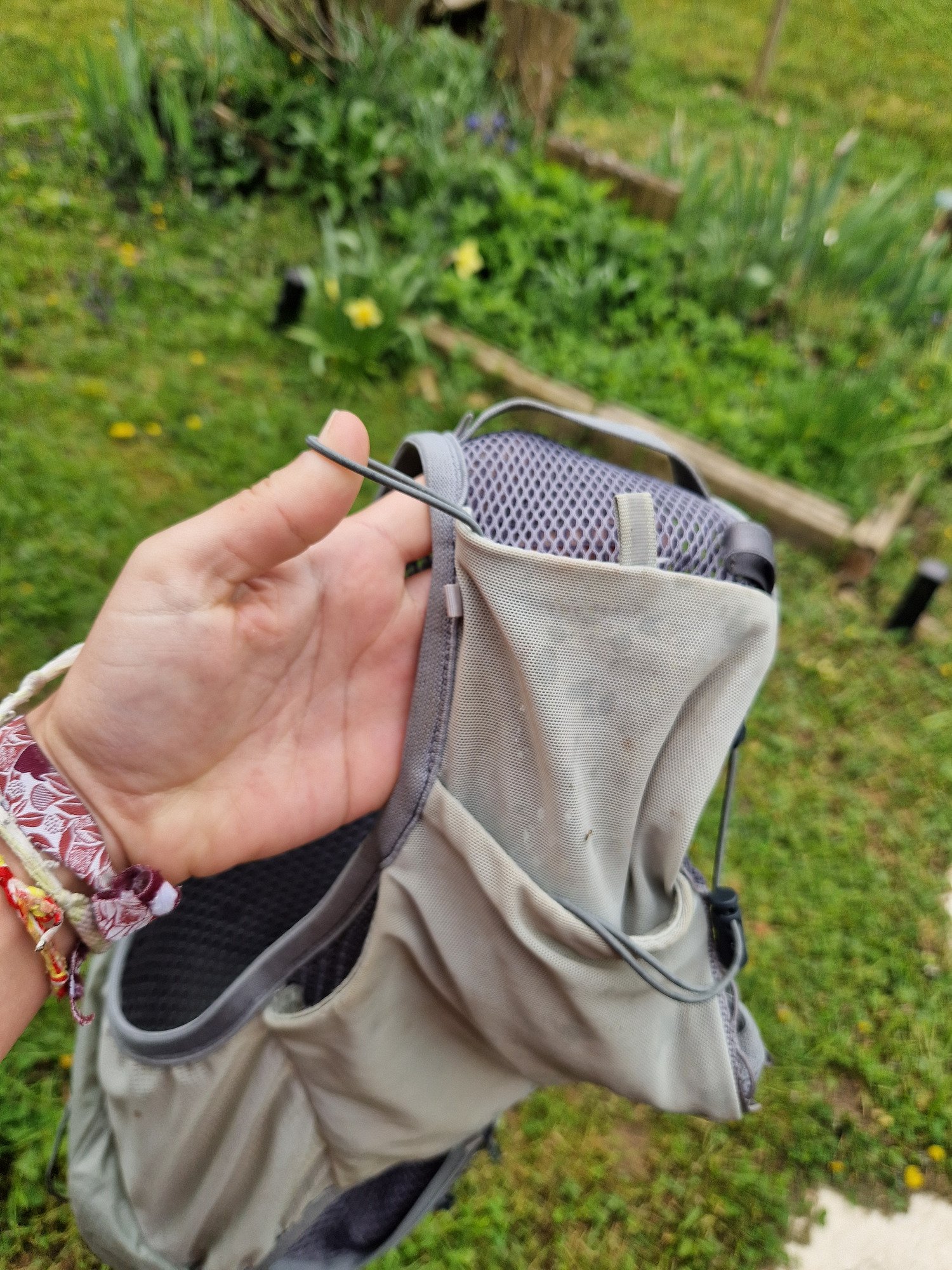 Enfin, ce que j’aime par dessus tout dans ce sac c'est sa robustesse, je n’y vais souvent pas de main morte pour rentrer flasques et gels ou ravito multiples mais le sac ne bouge pas ! Même dans la poche zippée pour les clés, le filet ne bouge pas !