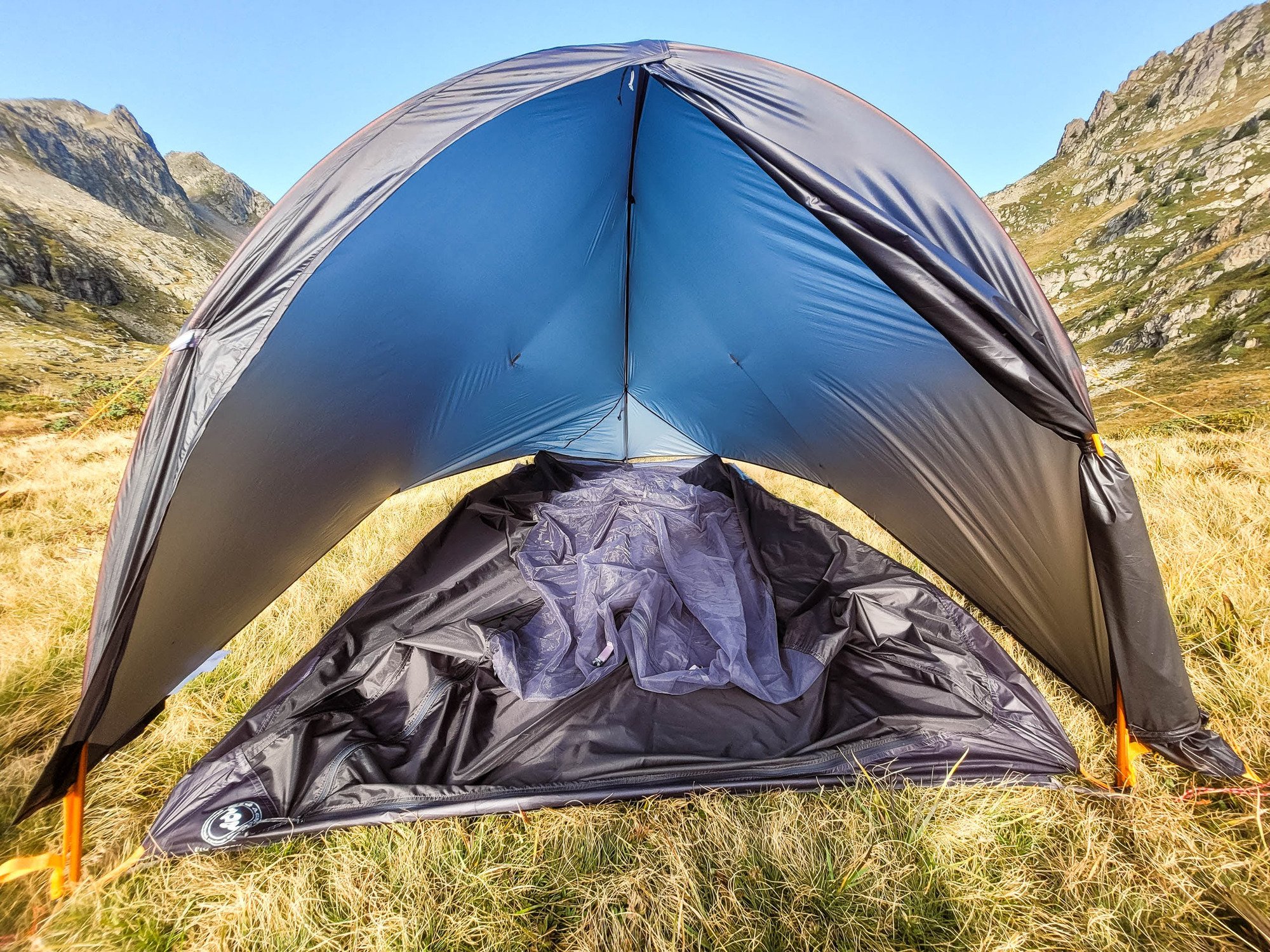 Le volume intérieur est trop limite pour se changer et s’installer confortablement à deux. Dommage ! C'est pour moi une tente 1,5 personne et non 2. Elle reste très confortable pour du bivouac solo ou avec son chien, ou même du bikepacking.