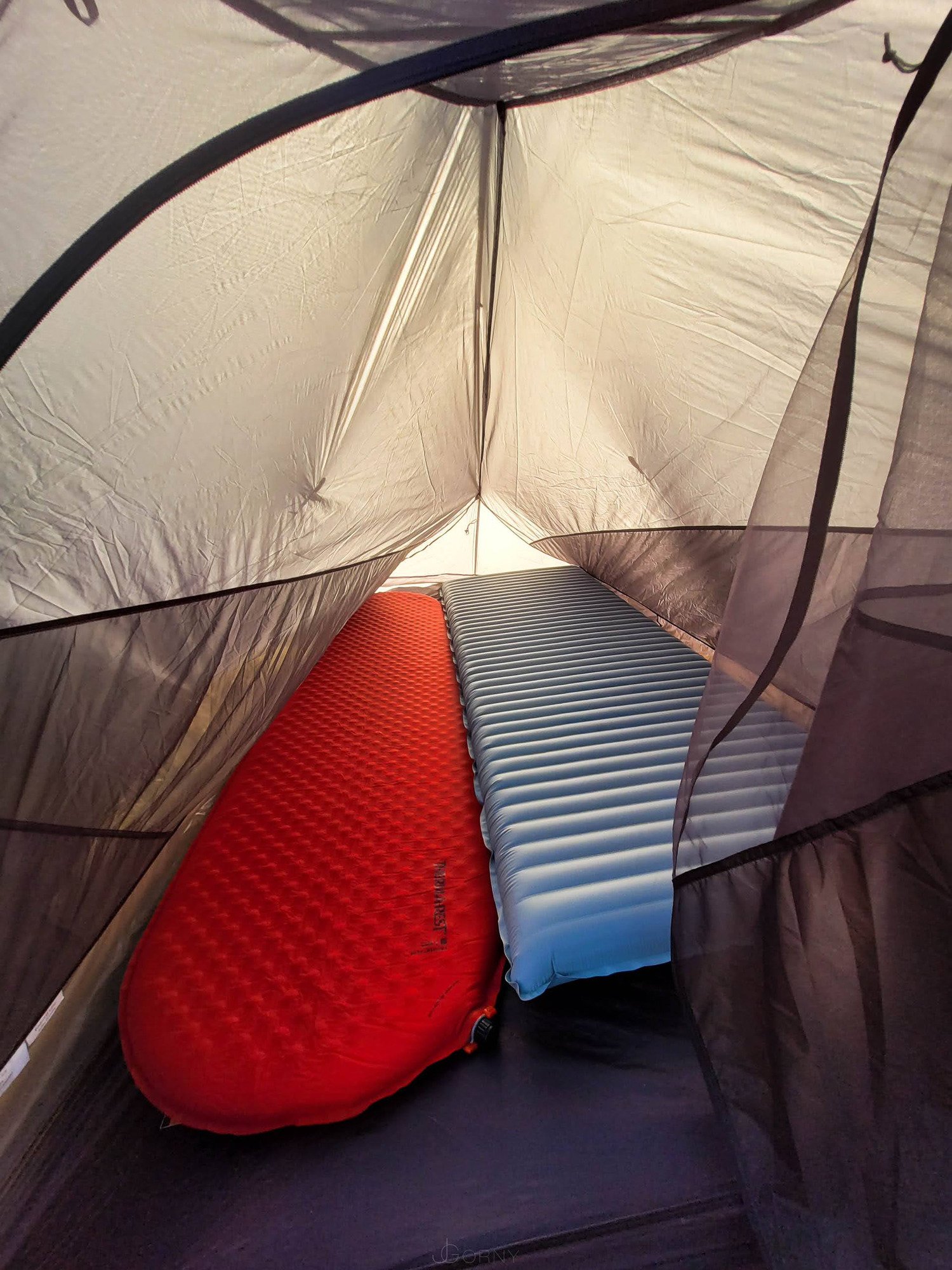 Attention également à la forme des matelas de sol : deux matelas rectangulaires seraient trop larges.