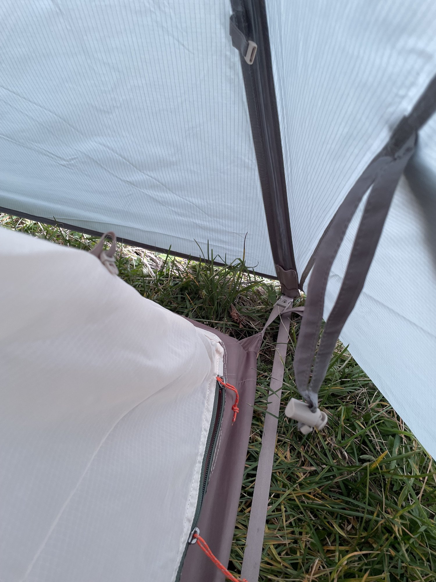 Le tente en elle-même est bien faite. Elle possède une pièce dont les structures sont en tissu léger du type moustiquaire qui sera appréciable pour l'été. Il y a deux entrées pour accéder à cette pièce, une par personne, ce qui facilite l'organisation. En effet, chaque entrée est abritée par la toile ce qui permet de laisser des affaires afin d'optimiser l'espace pour dormir.
