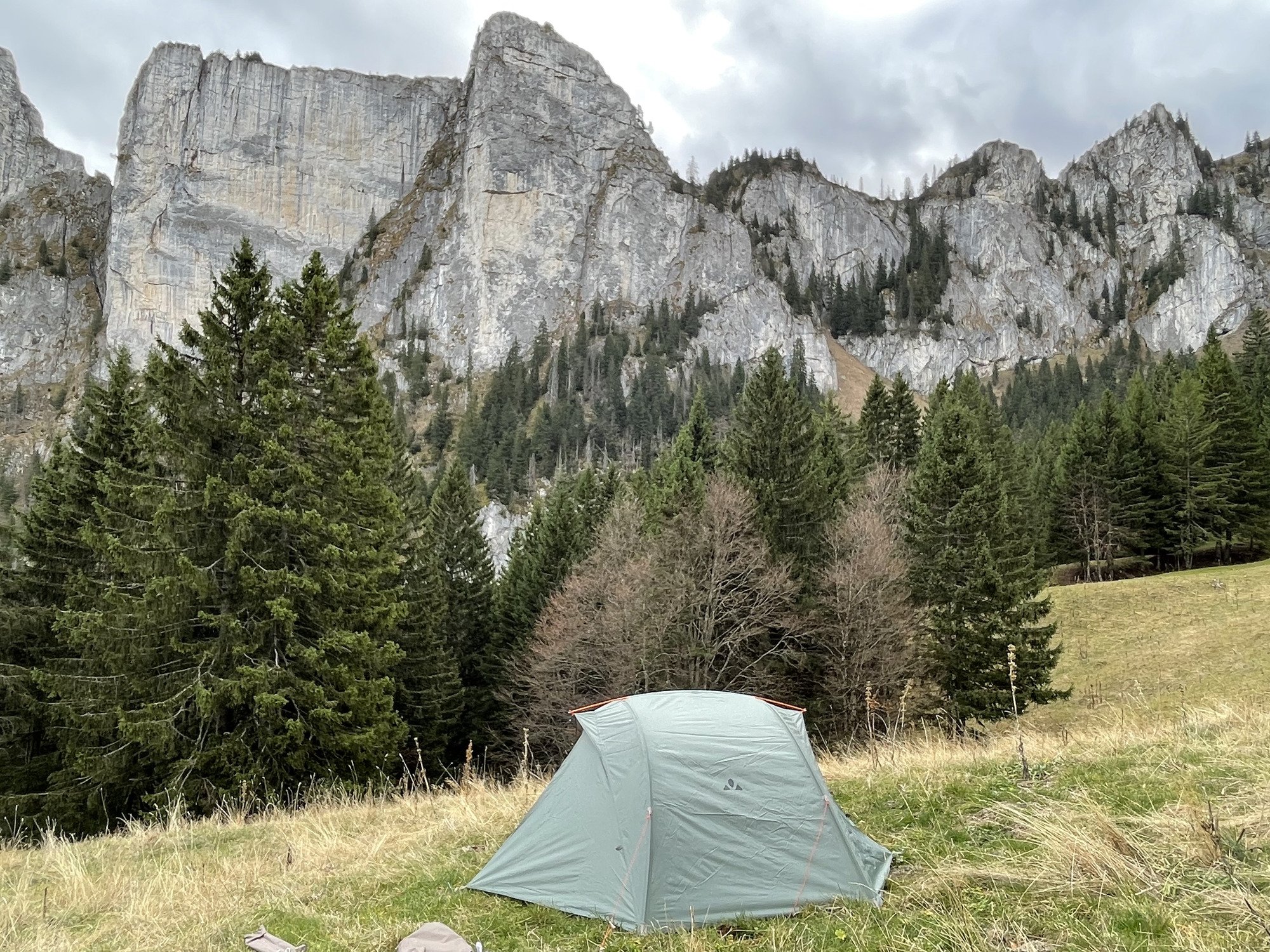 Test du modèle de tente Allround Space 2P (2 personnes) lors de l'automne 2025 en moyenne montagne par temps pluvieux. Test privé Outzer, modèle offert et donc mis gratuitement à disposition pour le test.