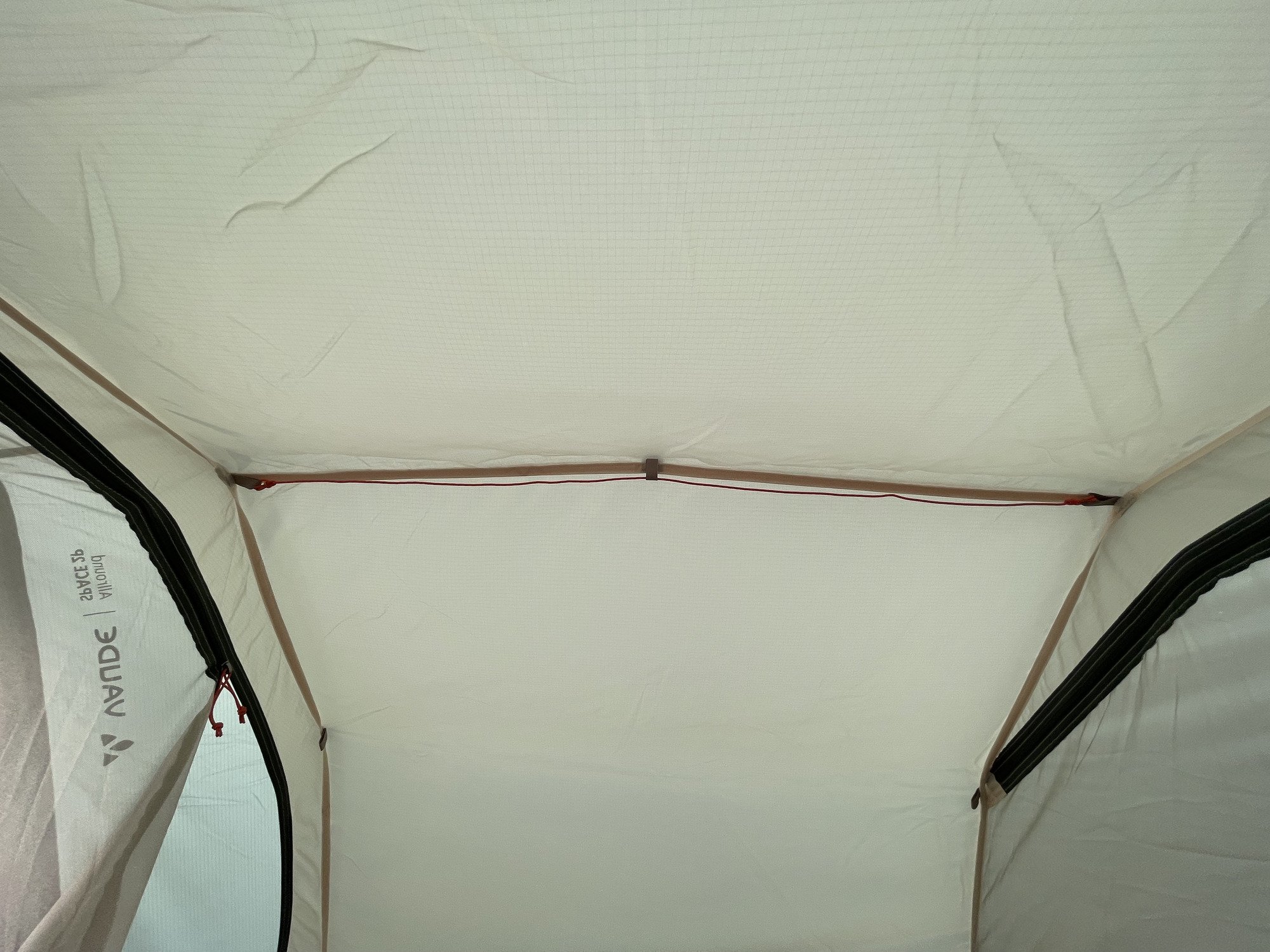 Le volume intérieur de la tente est agréable car on peut s'y tenir assis confortablement (même pour une personne de grande taille) et la longueur de la pièce permet de mettre deux matelas et d'y dormir à deux confortablement.
