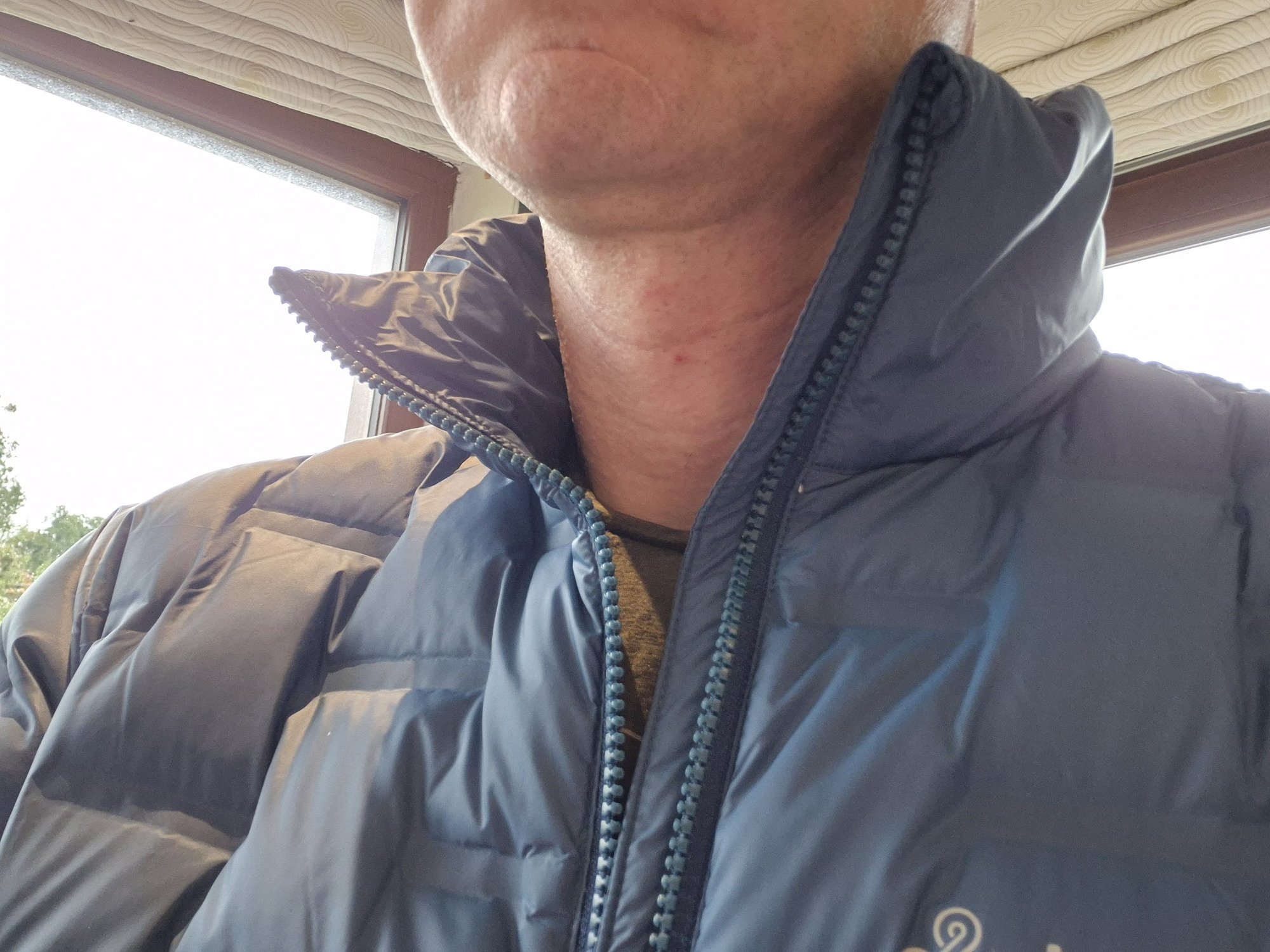 Le col à tendance à chatouiller un peu le menton et bas des joue quand la veste est a moitié fermée, ça manque peut-être un peu de travail de coupe à ce niveau là, mais rien de catastrophique. Une fois fermé jusqu'en haut ça protège bien le cou. Pas de capuche, mais c'est ce que je voulais.