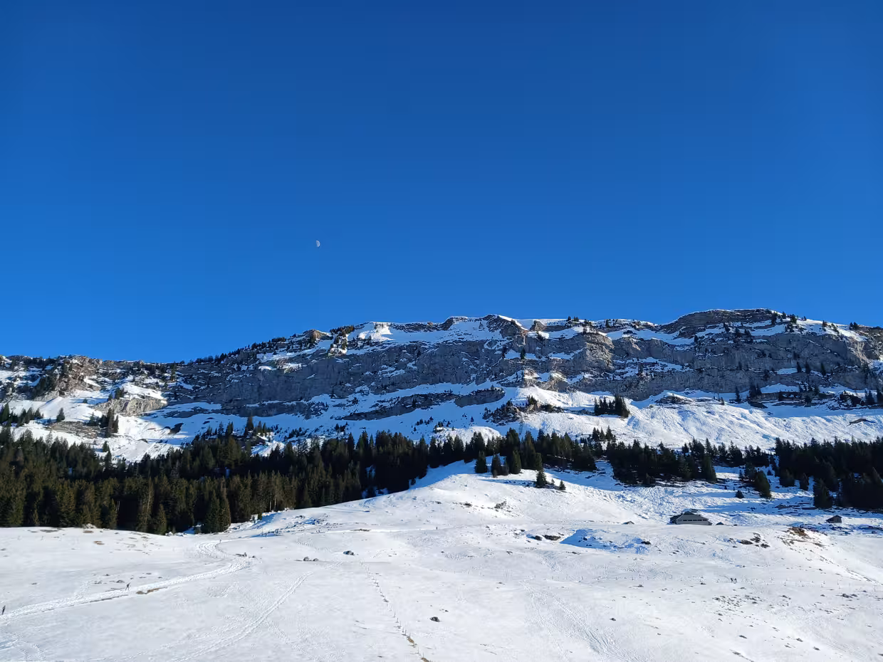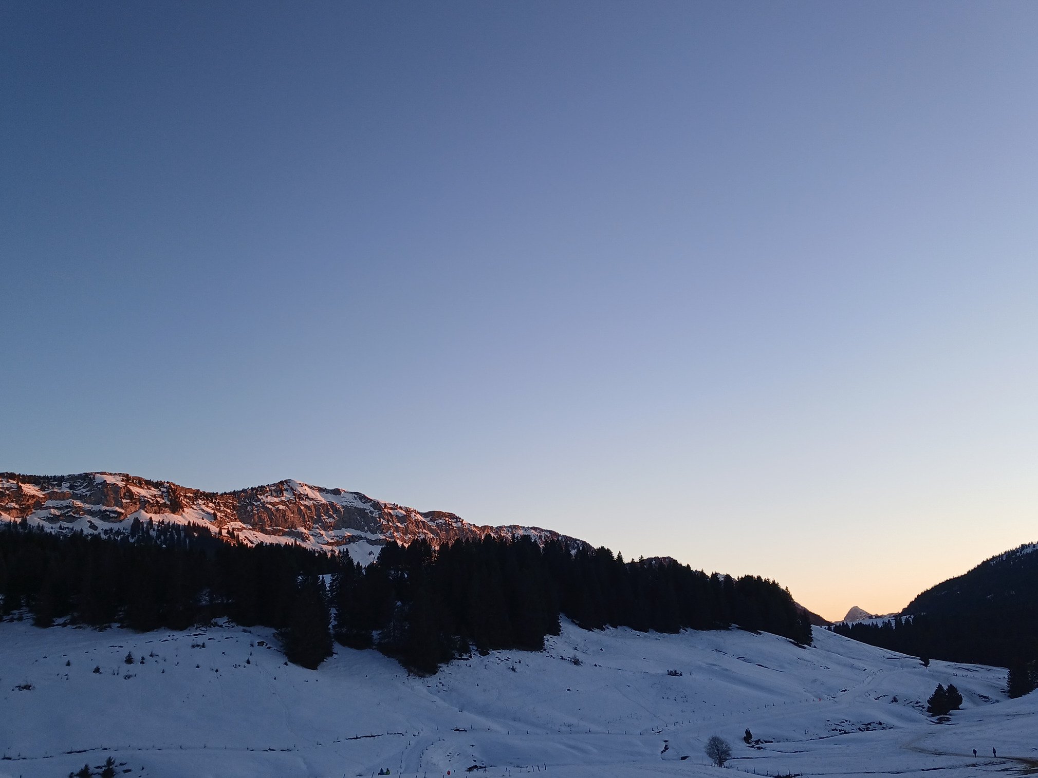 Une invitation à l’évasion, le long d’un sentier enneigé, parfois couvert de glace et prenant de temps à autre des allures de Laponie. Il s’étire le long des pistes de ski de fond et permet d’admirer la palette de couleurs qui s’applique au fil des heures sur les pointes de Québlette et Puvat.