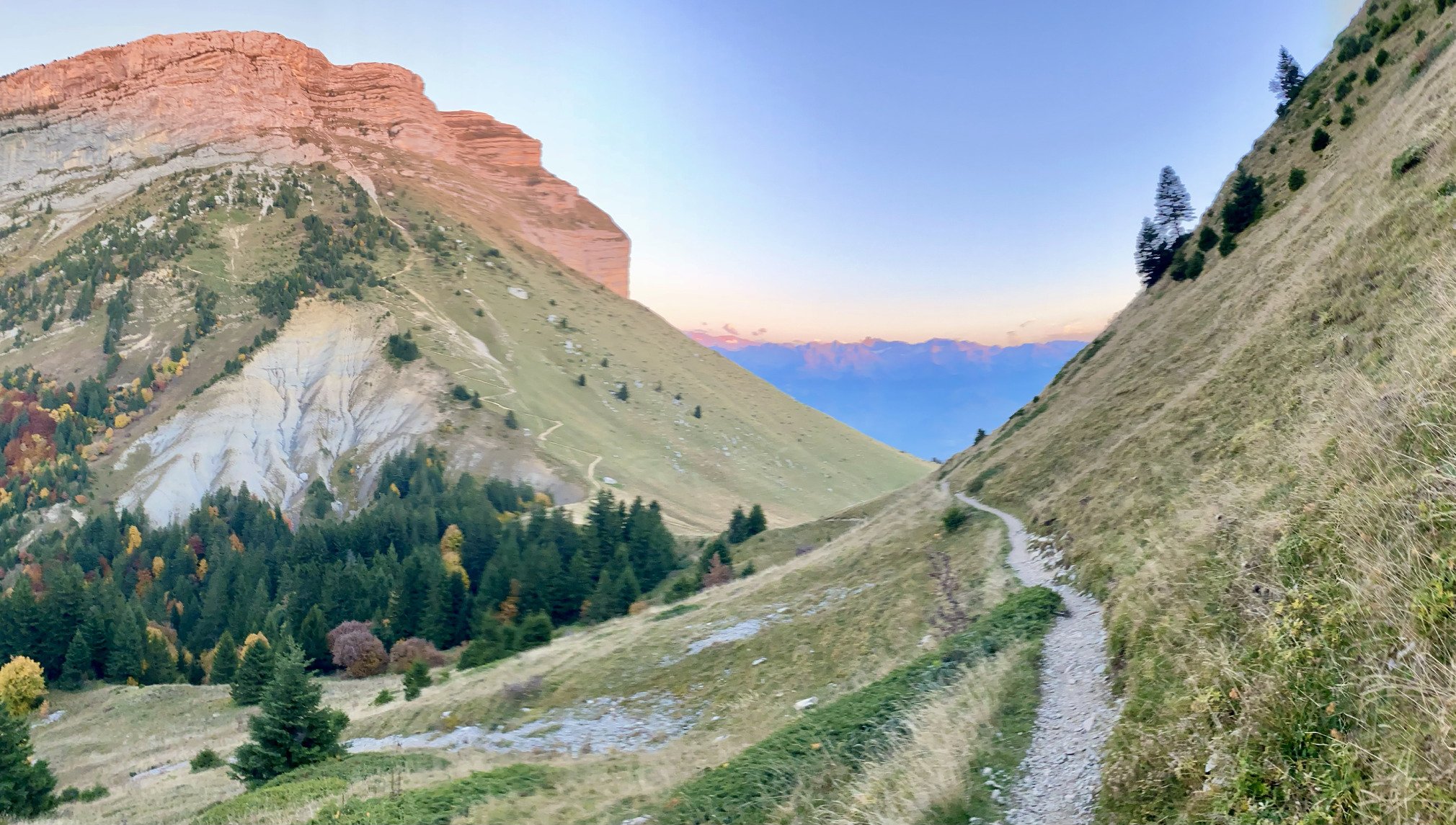 Départ de la maison, mon voisin me voyant graisser les transmissions de mon Orbea Rise à 17h15, le soleil déjà bien bas dans le ciel, mon voisin me dit qu'il n'y a aucune chance que j'atteigne le sommet de Pravouta (jouxtant la dent de Crolles) avant le coucher..