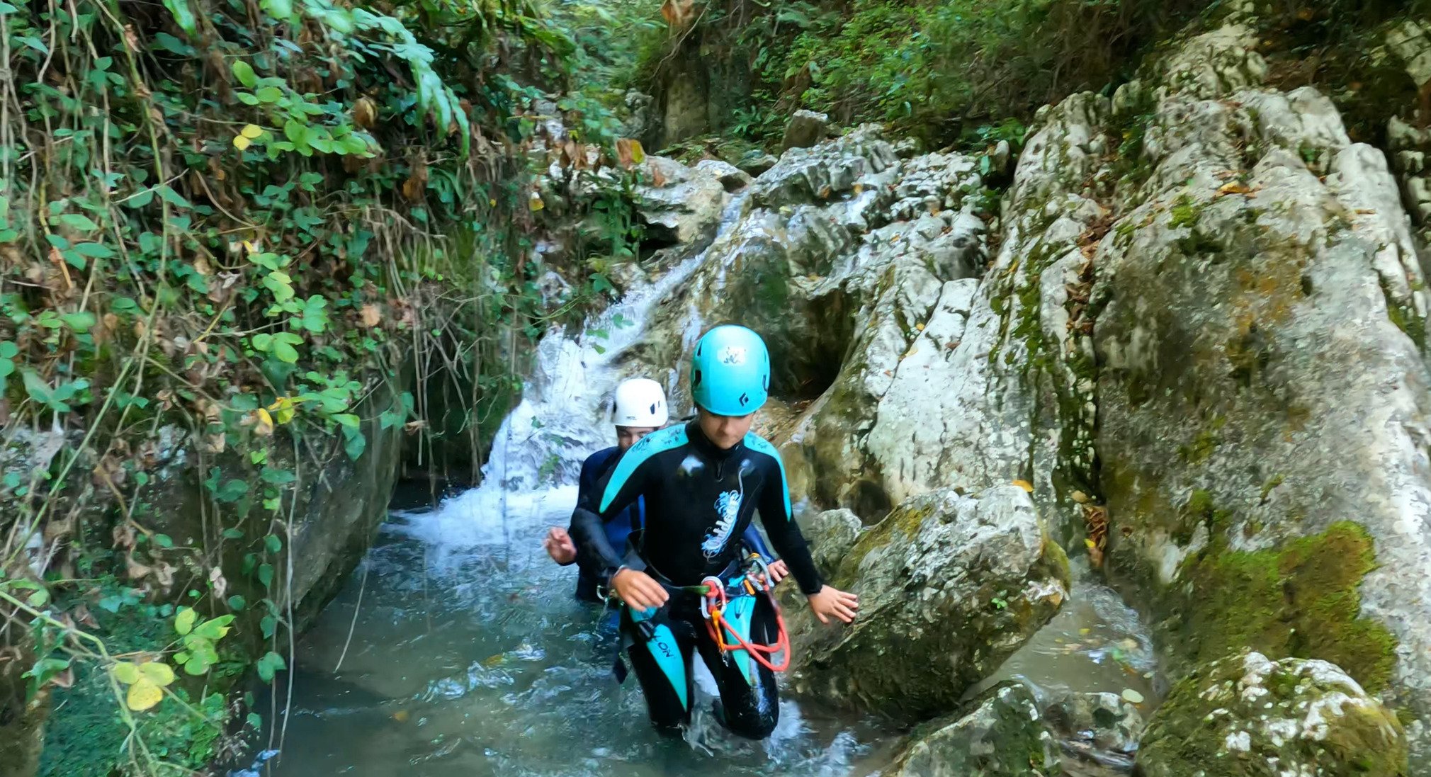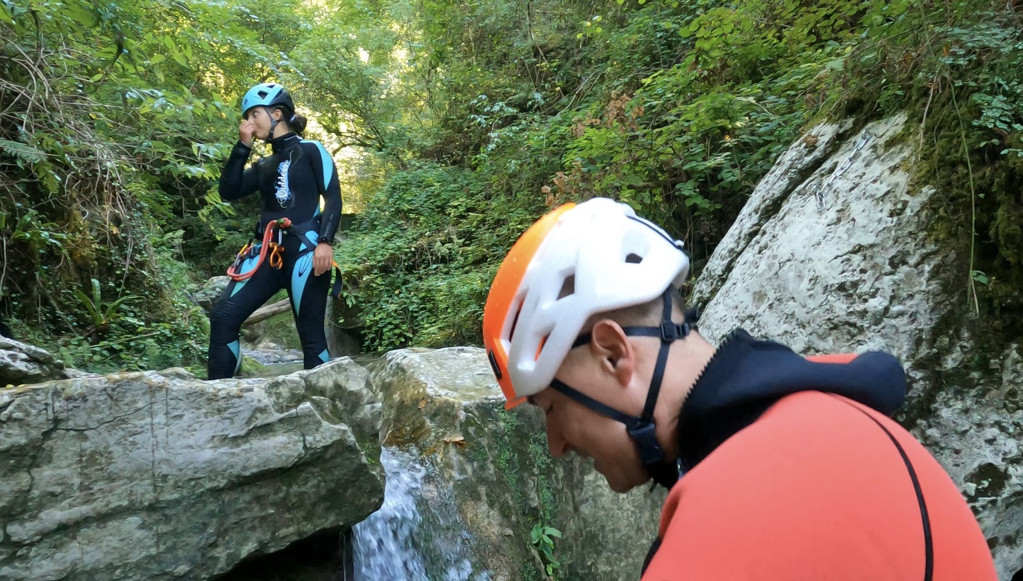 La suite, c’est rappels bien techniques pour finir la descente, mais comme on aime pas rester sages, on a carrément installé une tyrolienne pour se rajouter une dose de fun. C’est ça aussi l’esprit canyon, bricoler, tester, rigoler mais en sécurité.