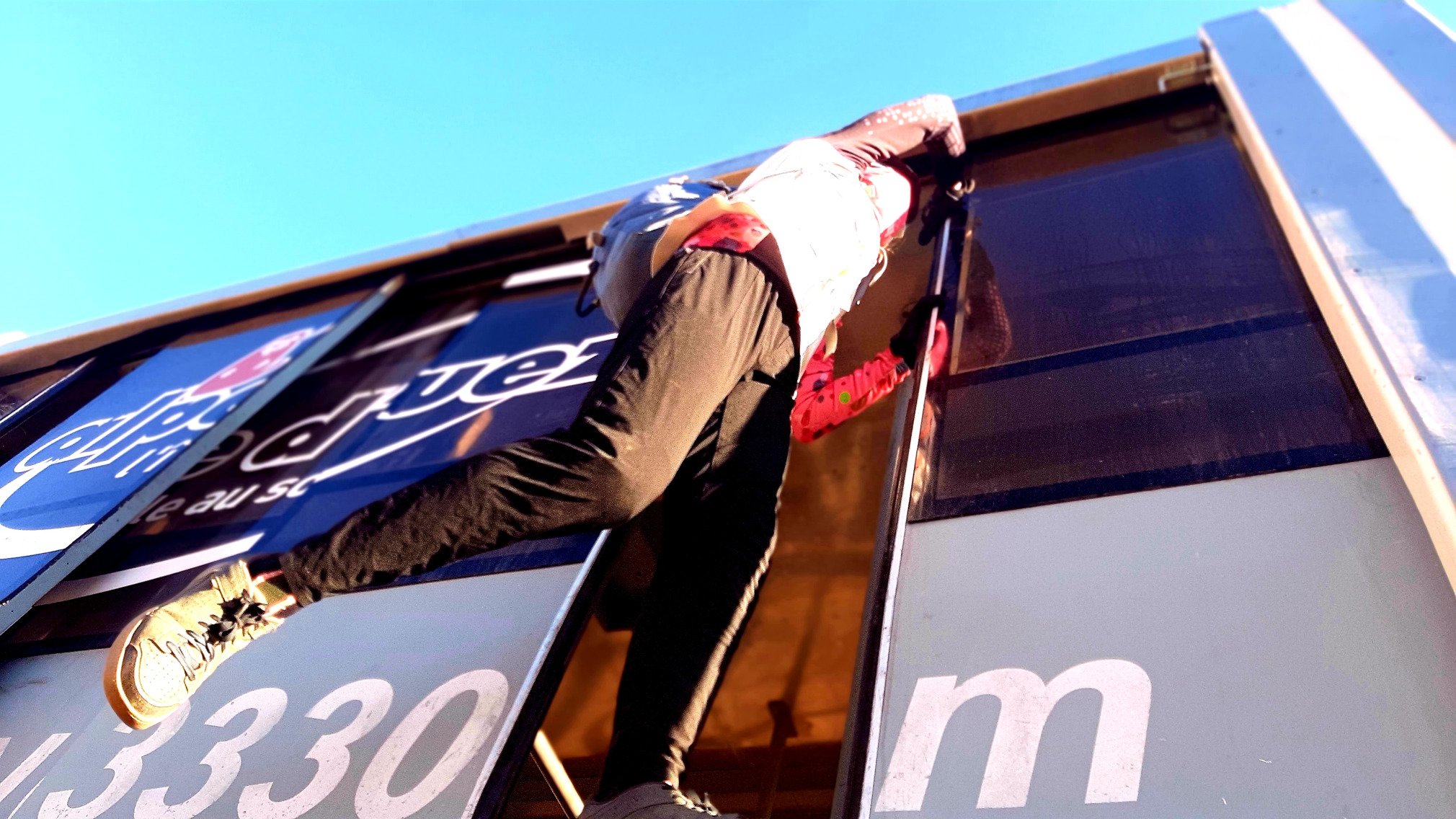 - resté coincé .... quelques minutes 😜. Aprés avoit fermé les portes, 2 options : dévérouiller la goupille au-dessus de la porte dans la benne, ou sortir par la trappe du plafond. La 1ère option a fonctionné 👍