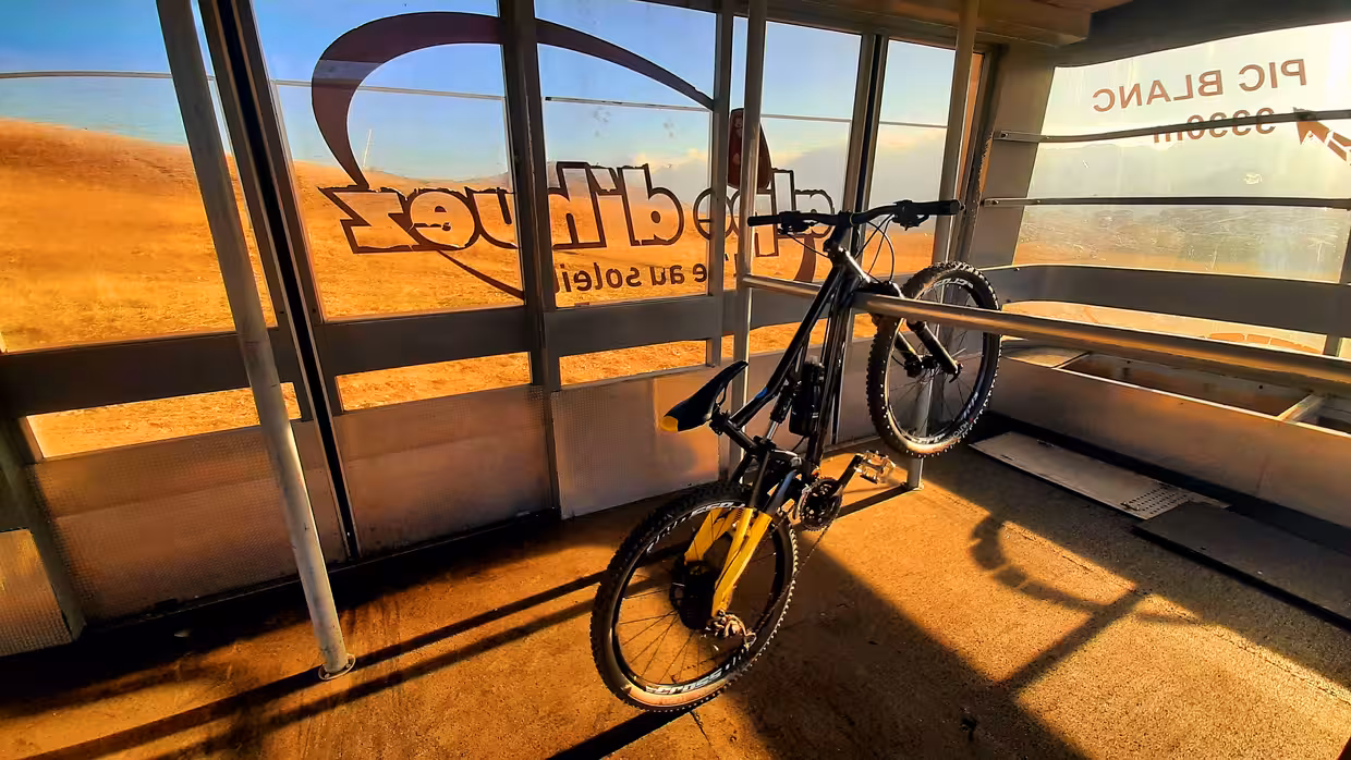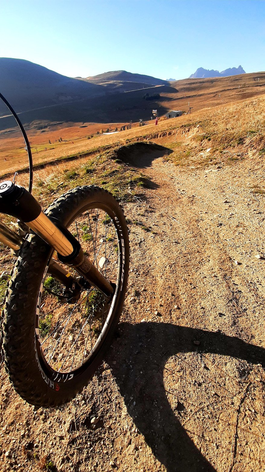 Remontée altitude 2100 m gare départ Pic Blanc 2 via chemin carrossable. Ttes bon grip, bien roulant. Descente piste bleue VTT sous télécabine Pic Blanc 1. C'était quasi parfait pour ce ride à cette période. Piste encore bien shapée. Justes quelques gros cailloux que l'on peut éviter. Et faire attention tout en haut vers la zone chantier, ca passe nickel quand on connaît la trace.