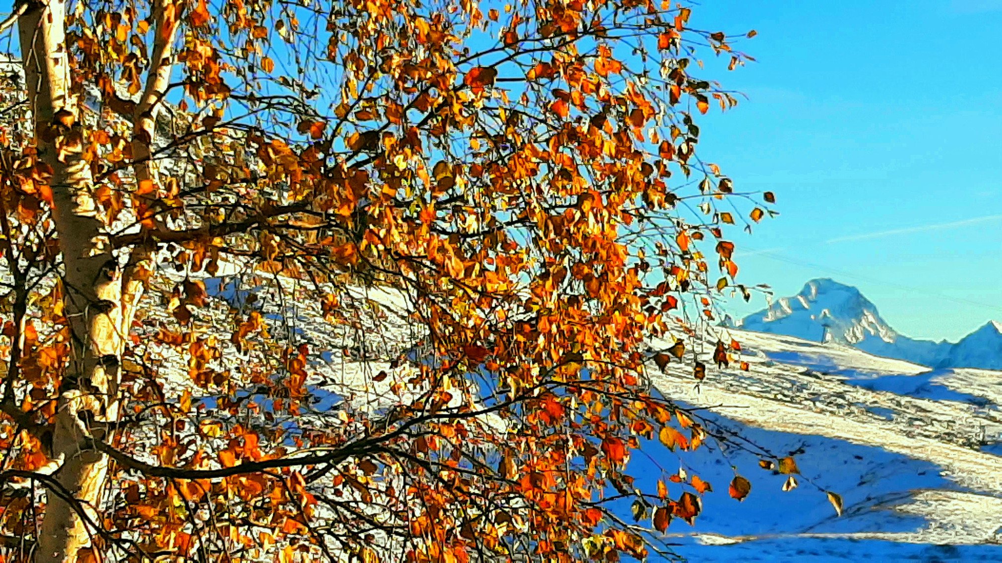 En prime un renard.Sa silhouette se détache bien dans ce paysage grandiose d'écrin blanc, de rocs et d'herbes jaunes d'automne !