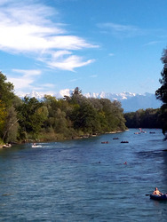 Passage au dessus le l'Aare en mode été, beaucoup de bateaux qui descendent depuis Thun, un des derniers jours cette année vue la météo annoncée la semaine prochaine.
